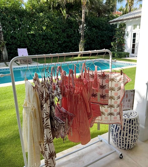 We had a small morning launch party in Palm Beach the morning before everything went live. It was full of my favorite people getting to see the collection in real life. We had a matcha milkshake cart (duh), and I loved getting to see everyone try on the pieces and place their orders.